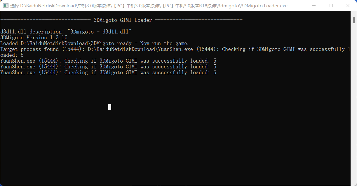 为什么打开游戏后3DMigoto显示几条 Checking if 3DMigoto GIMI was successfully loaded: 5